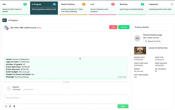 🚫 If you decline the enquiry or if it is marked as Lost, the contact details will not be visible.